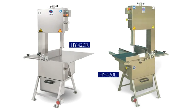 HY-420R/L High Speed Meat Band Saw 適用:豬、牛、羊、魚、雞、鴨、切片、切塊都沒問題,操作簡單,衛生安全,好清洗。
